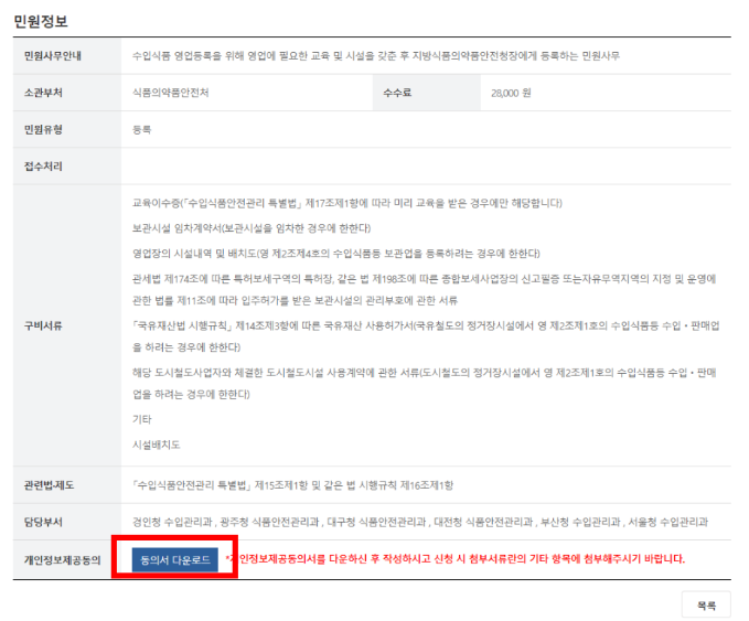 개인정보제공동의서는 다운로드 하신 뒤에,
