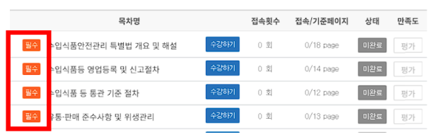 나의 학습방 > 현재 수강과정에 들어가면 필수항목이 4개가 나옵니다.