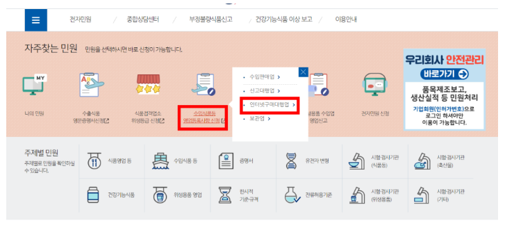 해외 중국구매대행 부업 시작시 수입 식품 영업신고 방법은 아래와 같습니다.